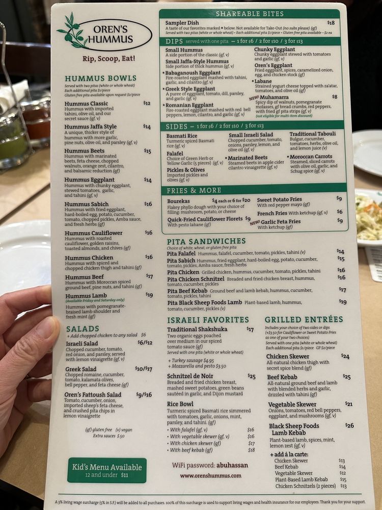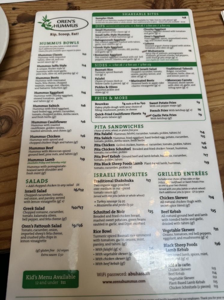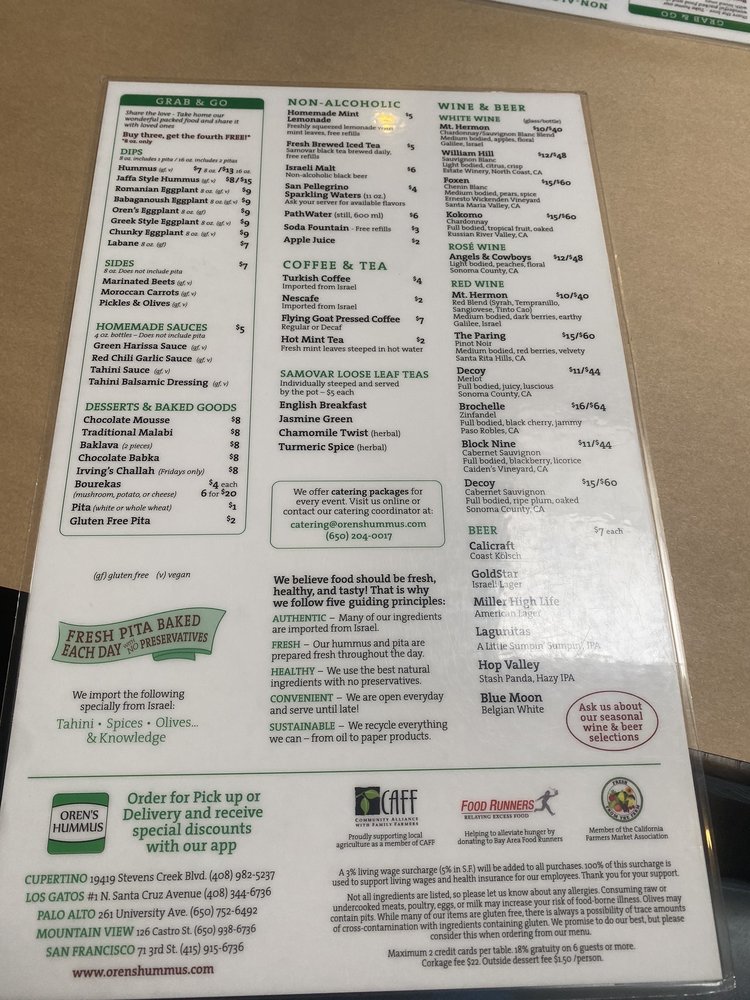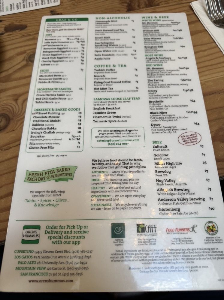 Oren's Hummus, located in Palo Alto, offers a diverse menu with options for everyone, including vegan and vegetarian choices. The signature Hummus Bowls like Classic Hummus and Hummus Jaffa Style showcase the rich flavors of imported tahini and olive oil. Grilled entrees like the PlantBased Lamb Kebab and Chicken Skewer are cooked to perfection with a secret spice blend. Customers rave about the authenticity of the dishes, with one reviewer praising the fluffy pitas and finely chopped salads. The warm and hearty Ema's Lentil Soup and refreshing Greek Salad are also standout options. With a welcoming ambiance and friendly service, Oren's Hummus is a must-visit for Mediterranean food lovers seeking a taste of home.